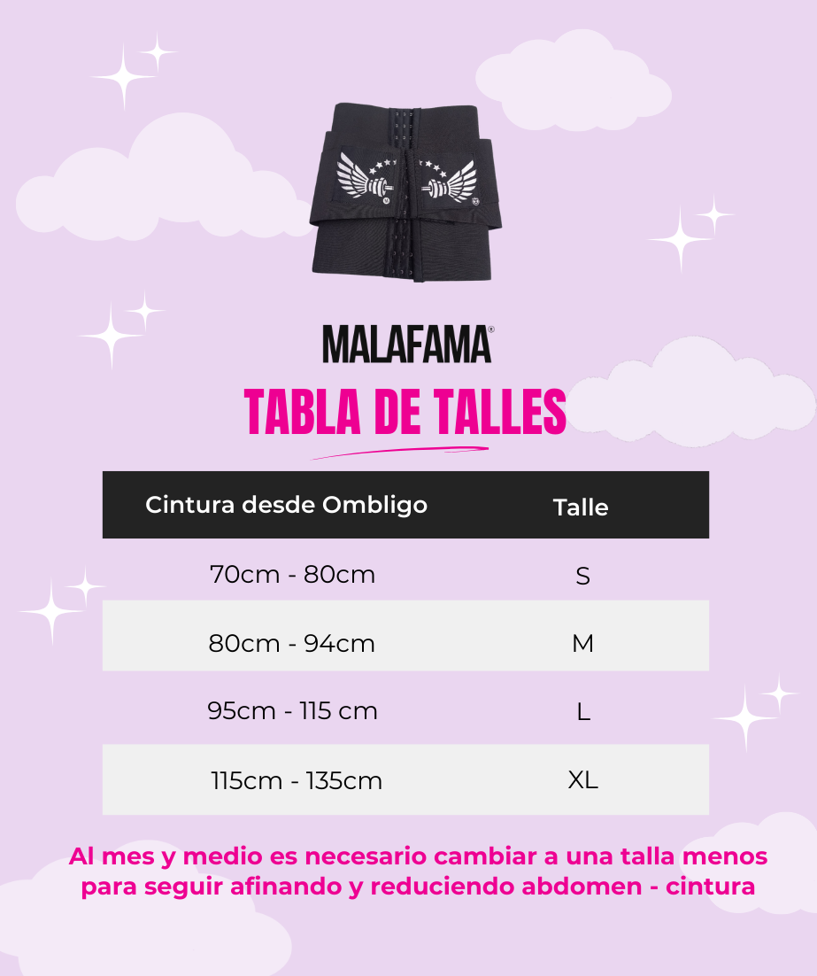 Los talles deben medirse en contorno de cintura (centímetros). Es importante que uses una cinta métrica para tomar la medida en la parte más estrecha de tu abdomen. Este modelo Premium incluye 6 ganchos para Ajustar la Faja a tu Cintura